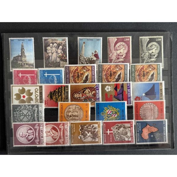 Stichwörter: Vatikanstadt, Poste Vaticane, ungebraucht, 1917-1970, Fatima 1917-1967, Vitas D.N.I. Christi, Pastor Gentium, Circolo S. Pietro, Expo’70, Lire-Nominale L20-L1500, religiöse Motive, Papst und Heilige, Architektur, Wappen, Mehrfarbendruck